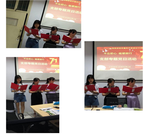 为了庆祝中国共产党成立99周年,进一步巩固拓展主题教育成果,引导广大党员深入学习党的理论,在工作中担当作为,当好表率。信息化建设与管理中心党支部分别于2020年6月23日、6月30日、7月1日开展了“牢记初心使命、争当出彩先锋”主题支部党日系列活动。现将活动情况汇报如下: