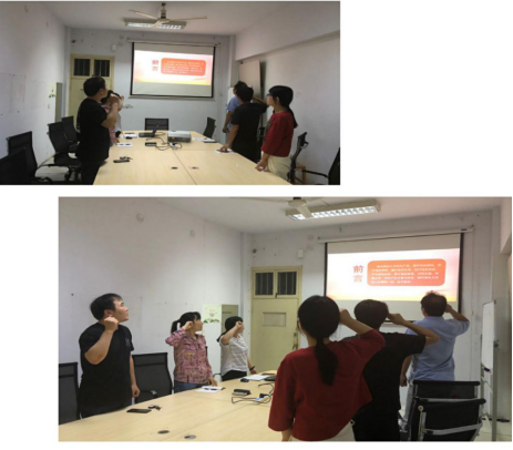 6月23日下午,信息化建设与管理中心党支部开展了以“牢记初心使命、争当出彩先锋”为主题的党日活动,本次活动包括重温入党誓词、配乐诗朗诵、主题党课等内容。