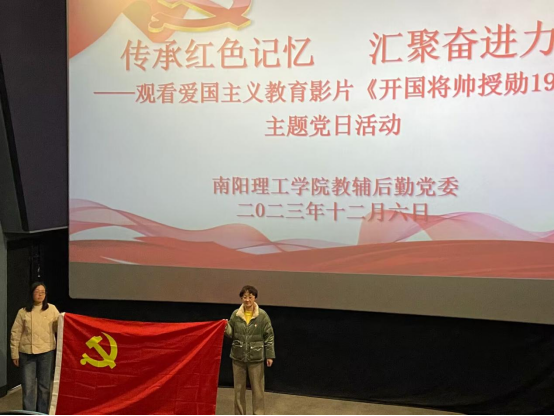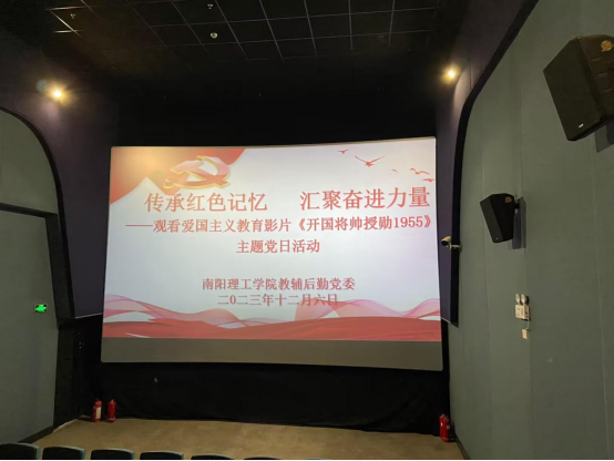为深入学习贯彻党的二十大精神,深刻领悟习近平新时代中国特色社会主义思想。12月6日,教辅后勤党委组织观看爱国主义教育影片《开国将帅授勋1955》主题党日活动,信息化建设与管理中心党支部全体党员参加。