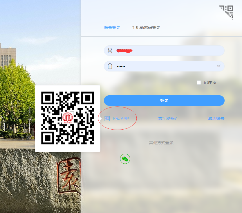 App下载二维码(微信扫描),或者登陆电脑端的登陆页扫描,或者在学校主页右下方扫二维码“我i南阳理工”,账号密码同电脑端。