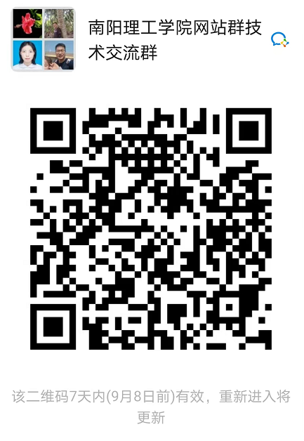 四、在网站访问及使用过程中遇到问题可通过南阳理工学院网站群技术交流群反馈,有专门的客服人员进行对接和处理,扫描下方二维码进群。