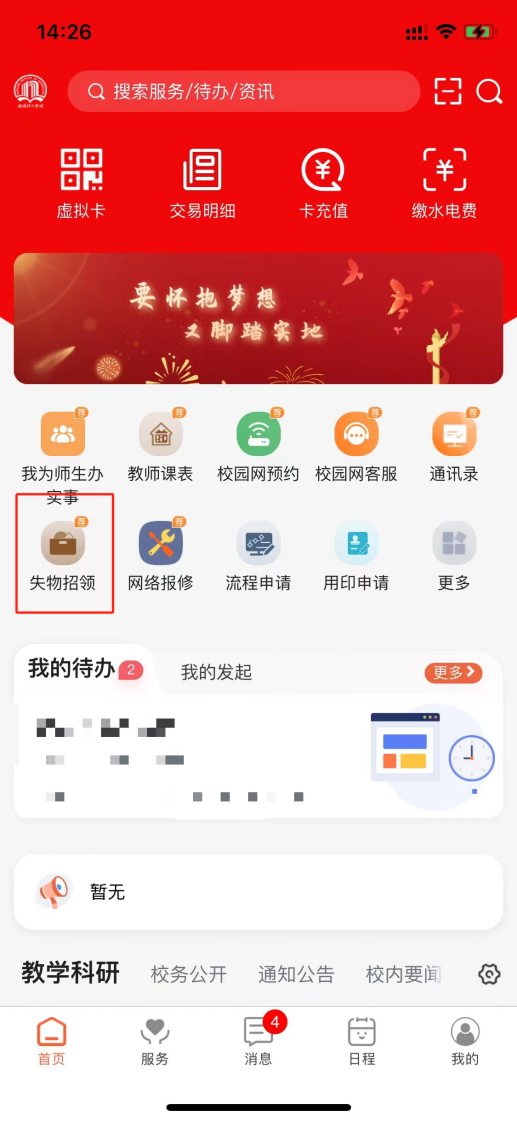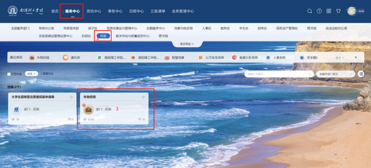1.手机端通过“我i南阳理工”app访问失物招领平台。