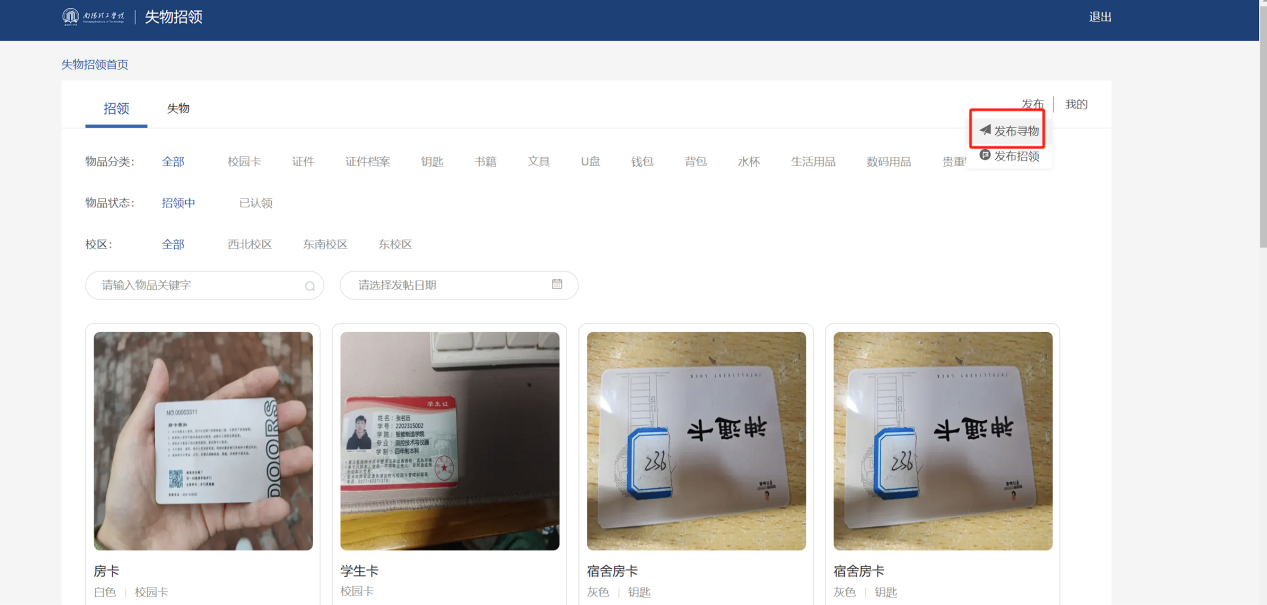 为方便师生即时发布和查询失物招领信息,失主及时找回失物,搭建起拾物者与失物者的桥梁,倡导拾金不昧、助人为乐的良好风尚,校团委和信息化建设与管理中心携手推出了“失物招领”平台。