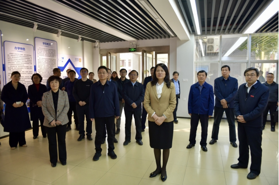 在智慧校园展厅,霍金花对我校在网络安全、智慧校园建设等方面工作情况给予充分肯定,并就数据治理服务社会管理和政府决策问题与相关人员进行深入探讨。