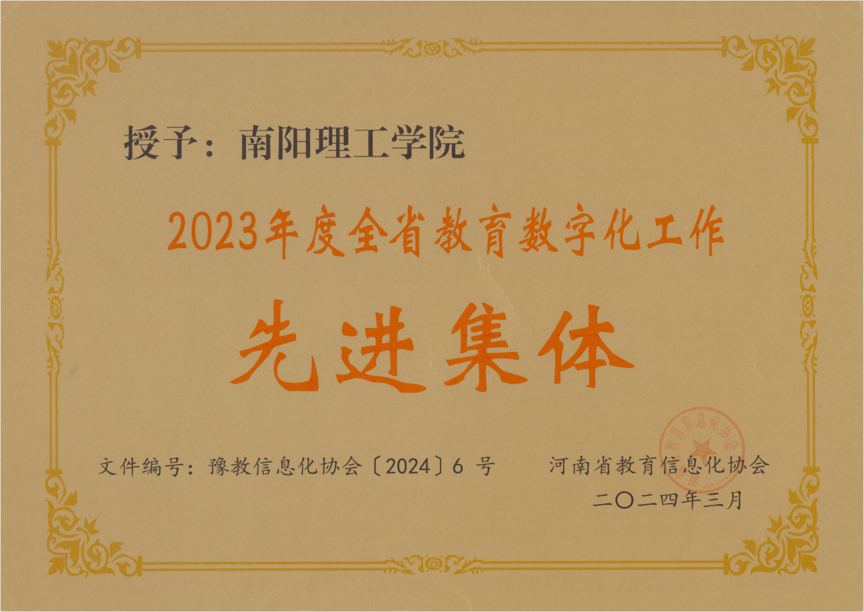 本网讯(特约记者/古宸豪)为进一步深入贯彻落实党的二十大精神,激励会员单位为河南省教育数字化转型作出积极贡献,河南省教育信息化协会开展2023年度全省教育数字化工作先进集体和先进个人评选活动。经过评选,根据豫教信息化协会〔2024〕6号文件精神,我校荣获2023年度全省教育数字化工作先进集体称号,吴绍兴、耿凯峰、孙晓莹、徐扬荣获2023年度全省教育数字化工作先进个人荣誉称号。