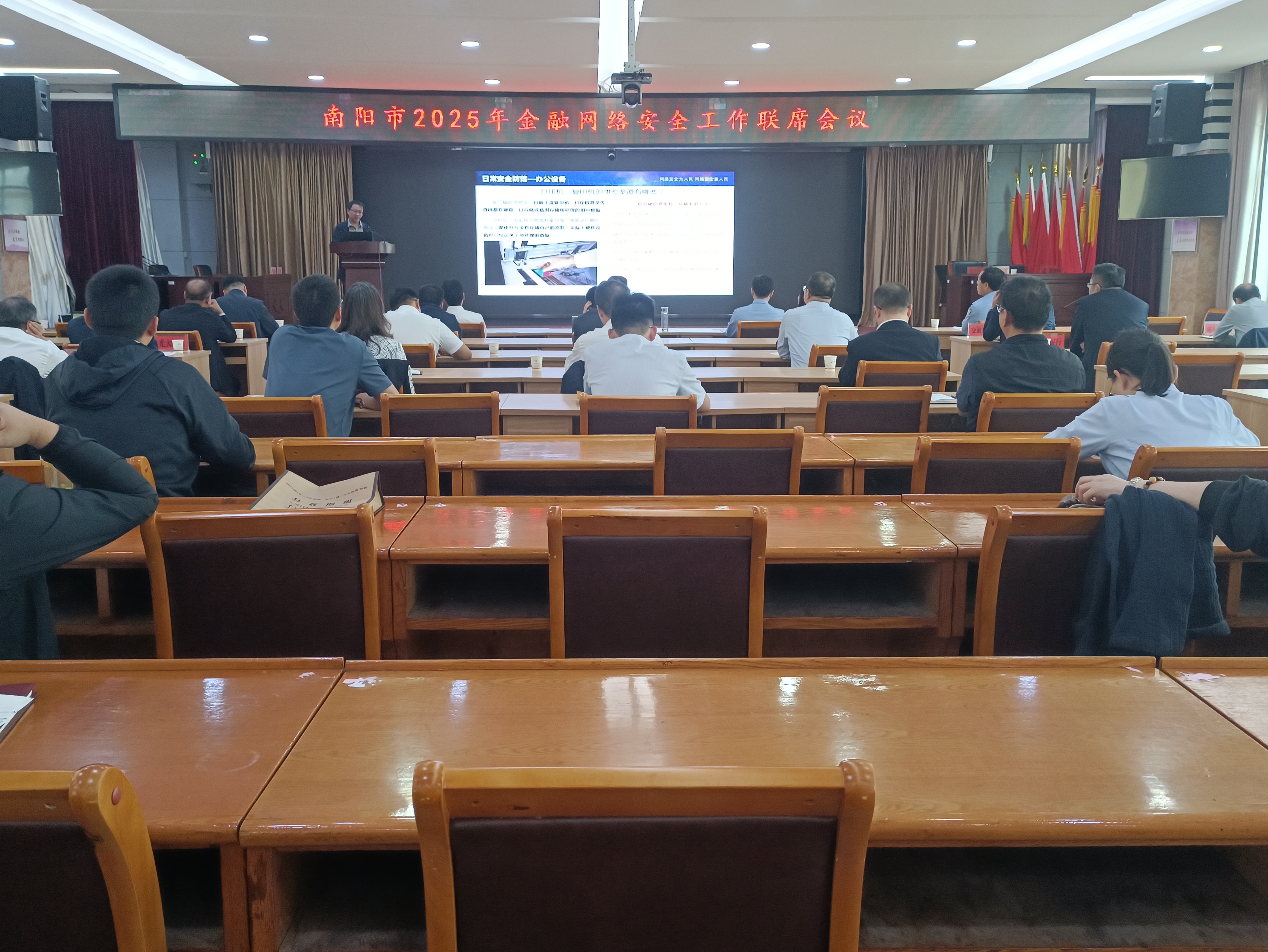 本网讯(特约记者/耿凯峰)9月19日,国家金融监督管理总局南阳监管分局联合中国人民银行南阳市分行、市公安局组织全辖银行机构召开2025年金融网络安全工作联席会议,信息化建设与管理中心副主任耿凯峰受邀作网络安全意识培训。