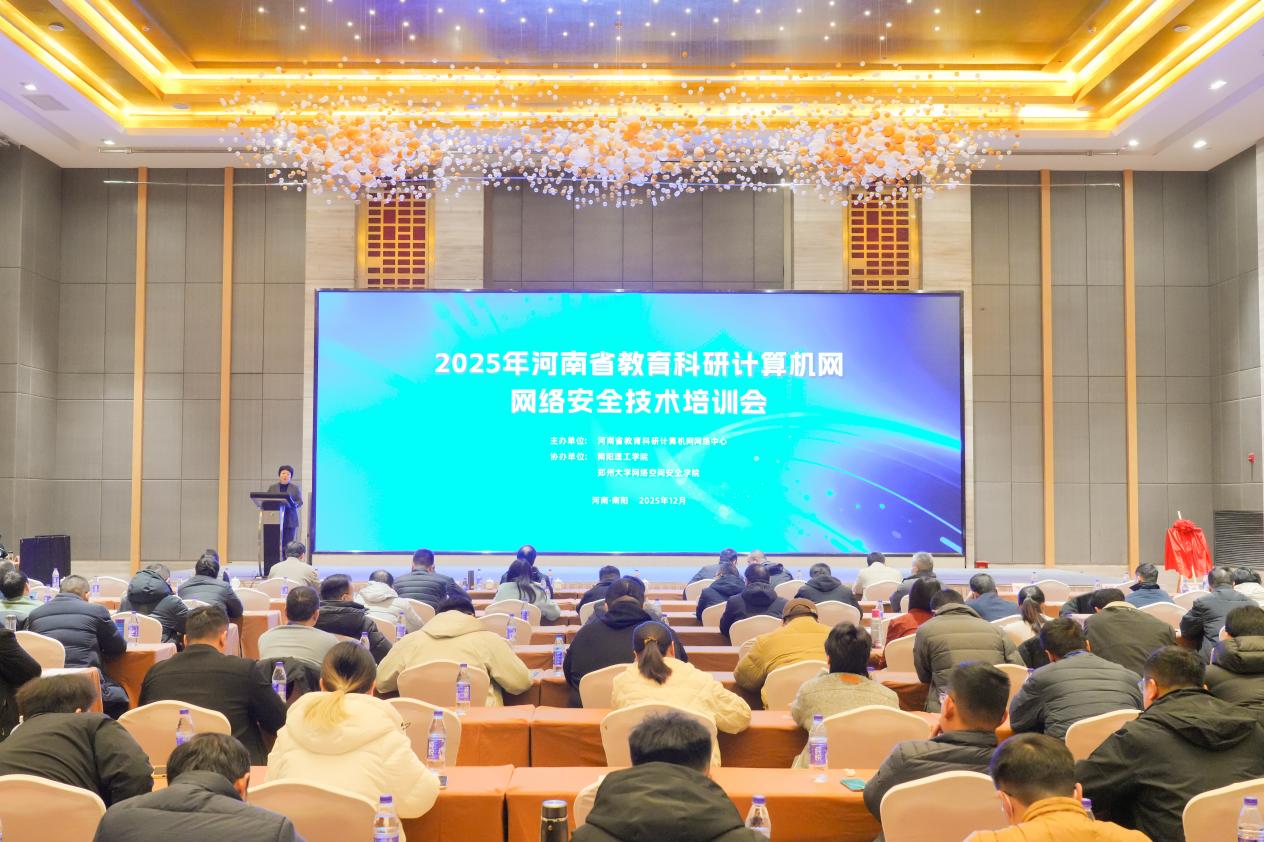 本网讯(特约记者/古宸豪)12月4日-5日,2025年河南省教育科研计算机网(简称省网)网络安全技术培训会在南阳举办。南阳理工学院副校长高芳放、省教育厅科学技术与信息化处四级调研员彭亚宁、省教育科研计算机网网络中心主任、郑州大学信息化办公室主任张子蛟出席开幕式并致辞。全省各入网单位网络安全管理人员100余人参会。本次会议由省网中心主办,南阳理工学院、郑州大学网络空间安全学院协办。