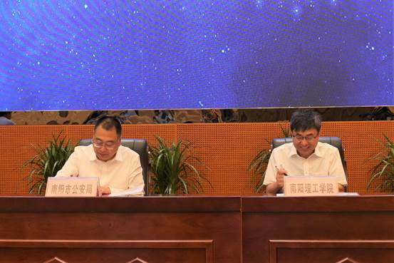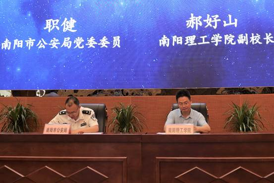 6月15日,我校与南阳市公安局战略合作协议签约仪式在第三报告厅顺利举行,南阳市副市长、公安局长鲁文明,市委宣传部副部长、网信办主任孙起照,市公安局党委委员职健,市委网信办副主任张晓东,校党委书记刘荣英,校长安士伟,副校长郝好山出席仪式,签约仪式由副校长肖泽昌主持。市委网信办、市公安局、校信息化建设与管理中心、校地合作与管理服务中心以及计算机与软件学院等相关同志参加活动。