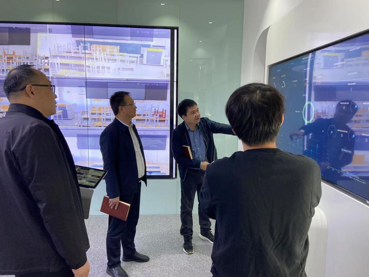 会前,蔡广宇实地调研了智慧校园展厅的智慧教学平台、智能运维管理平台、云桌面管理平台的功能与运行情况。