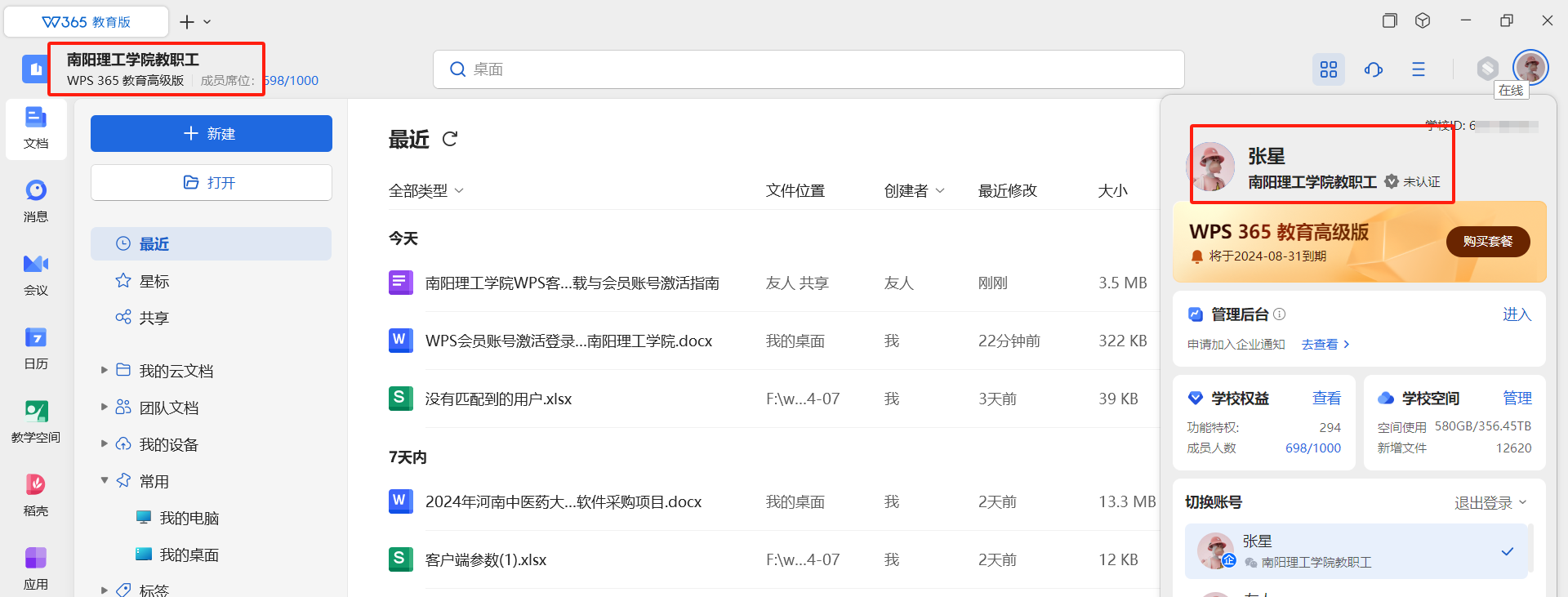南阳理工学院 WPS Office 专属版办公软件,会员授权使用方式。会员授权享有文档漫游、云端备份、协同编辑、还支持WORD/PDF/PPT/图片等文件相互转换、中英文互译、PDF权益包(PDF转换、编辑等)、图片权益包(OCR识别、图片修复等)、独立功能权益包(文件瘦身、文档修复等)、稻壳会员、365GB云空间等会员功能。